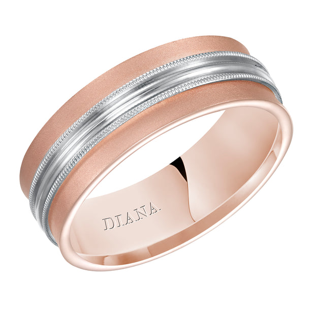 7MM Mens Wedding Band - Brushed Finish with Braided Design and Round Edge