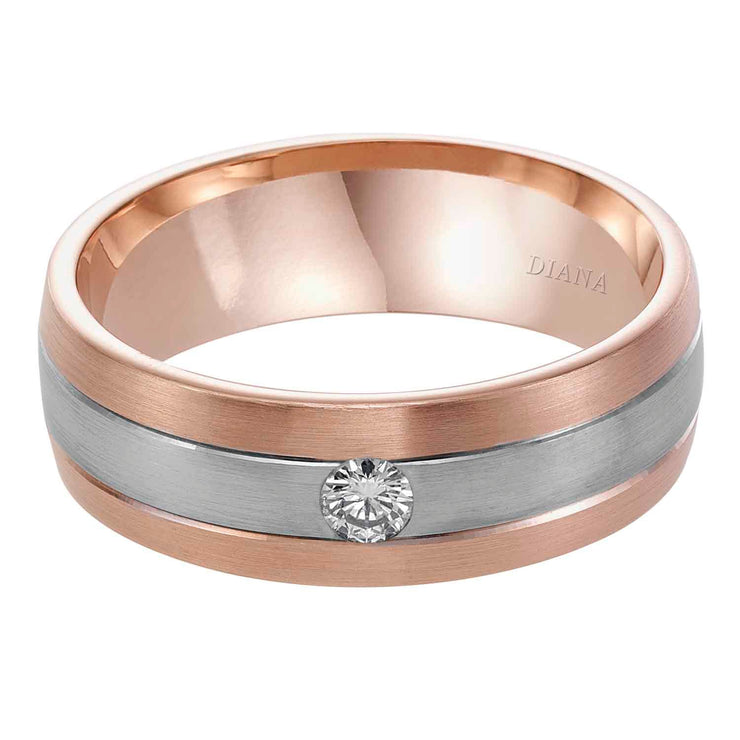 Two-toned Comfort Fit wedding band with satin finish and diamond detail