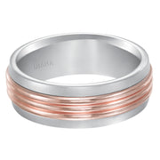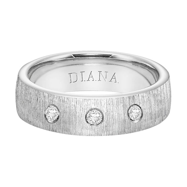 Two-toned Comfort Fit wedding band with satin finish and diamond detail