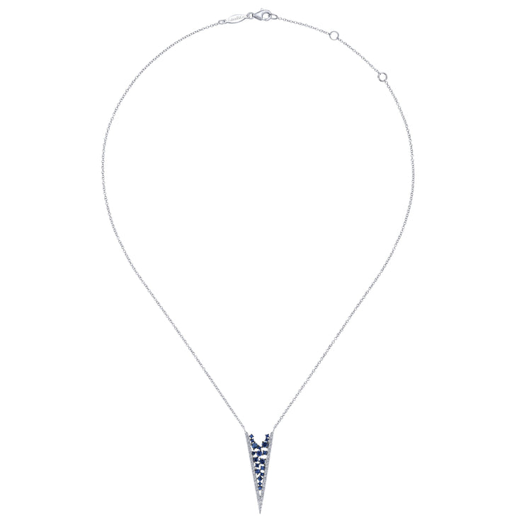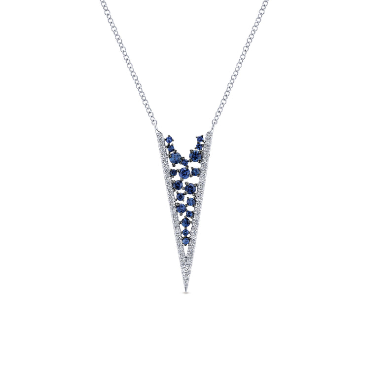 "V" design pendant necklace with pave set blue saphhires and diamonds