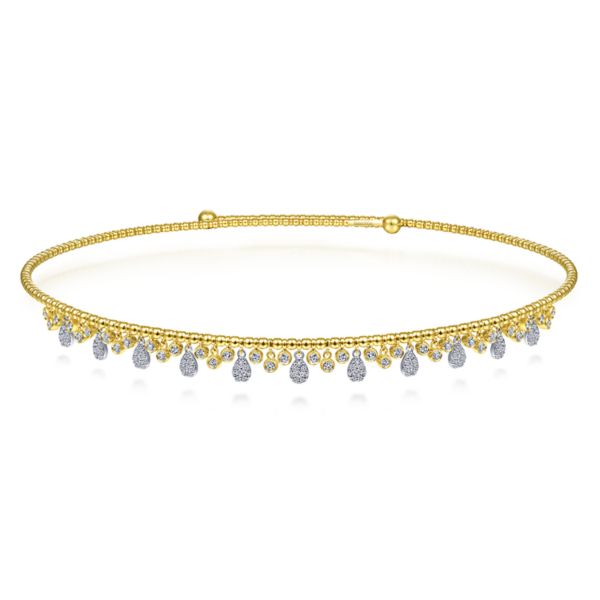 Flexible Beaded Collar Necklace with Diamond Pave` Drops
