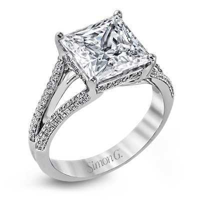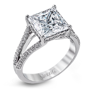 This lovely classic white gold engagement ring is accentuated by .34 ctw of round cut white diamonds in an eye-catching openwork design. Engagement rings do not come with center stone.