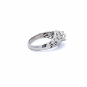 This lovely classic white gold engagement ring is accentuated by .34 ctw of round cut white diamonds in an eye-catching openwork design. Engagement rings do not come with center stone.