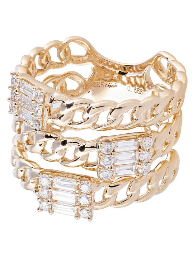 Triple Wrap Link Ring with Diamonds