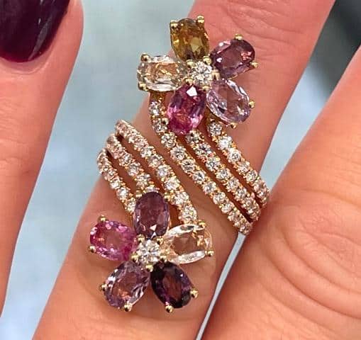 Pink Gemstone and Diamond Flower Ring
