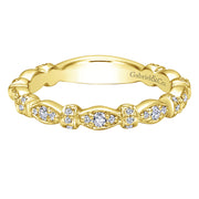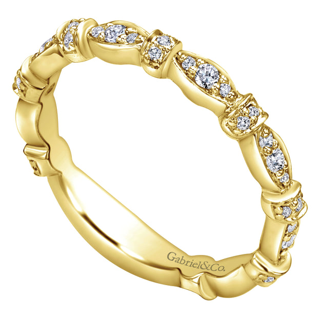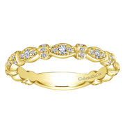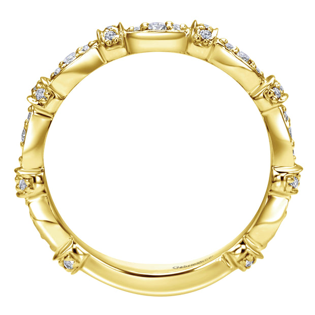 This lovely 18k yellow gold band showcases varied sizes of round white diamonds that total .30 ctw. Perfect for stacking.