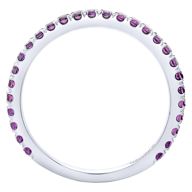 Ultra thin stackable ladies ring with pave set amethyst