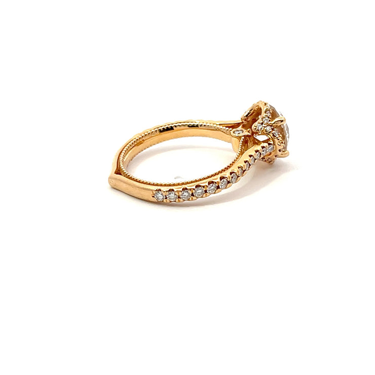 18K rose gold ring with a 2.01 carat, EGL certified diamond, and 0.55 carats of diamonds in the mounting.