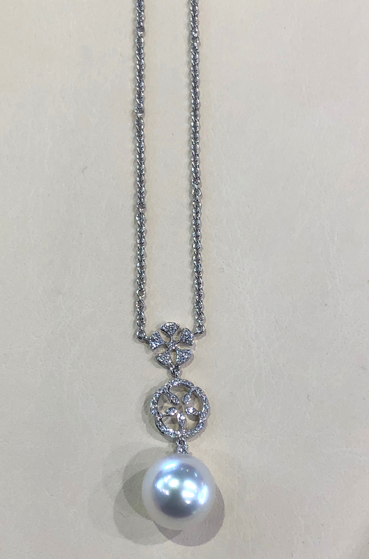 18K white gold, 2.73 carats of diamonds on a double chain.