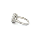 An 18K white gold engagement ring with a 2.37 carat pear center with an additional 1.33 carats of round brilliant diamonds