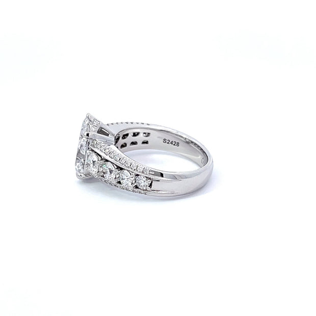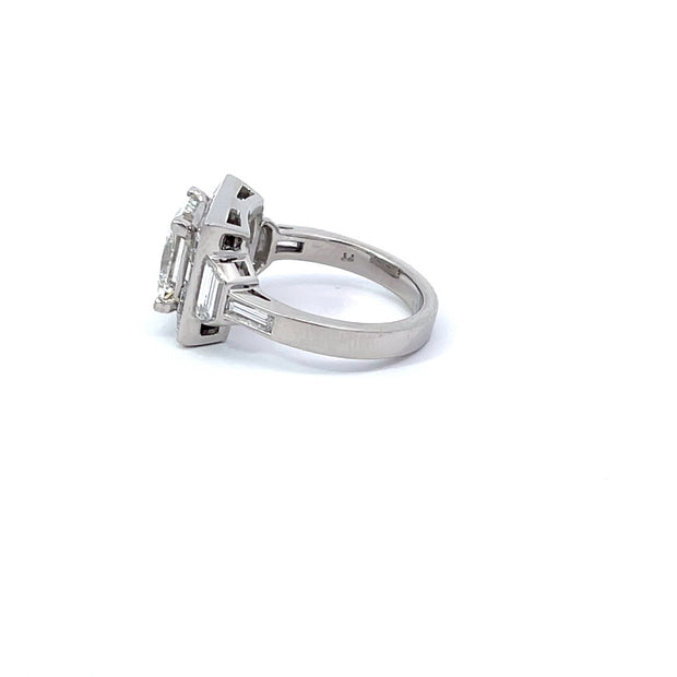 This stunning ring has a 3.11 carat center with an additional 2.08 carats of diamonds in a platinum setting.