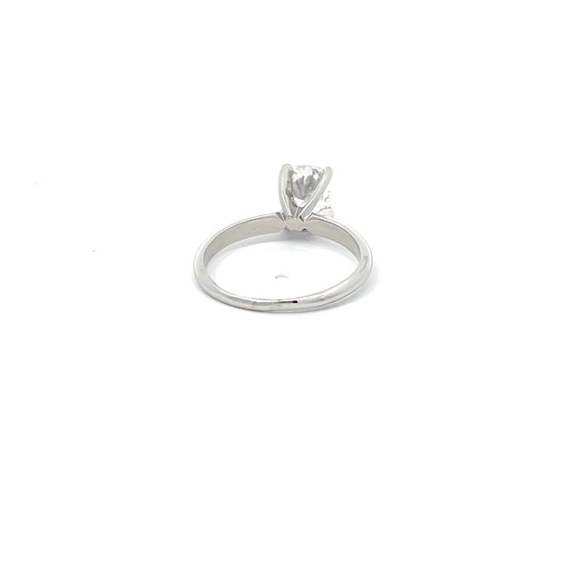 A 1.00 carat cushion shaped diamond in a 14K white gold setting.