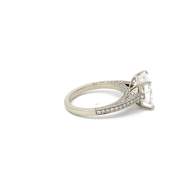 This gorgeous ring contains one 4.67 carat square radiant cut diamond and 0.55 carats of pave` diamonds in the setting.