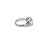 This 18K white gold three stone ring has a total of 3.34 carats of diamonds.