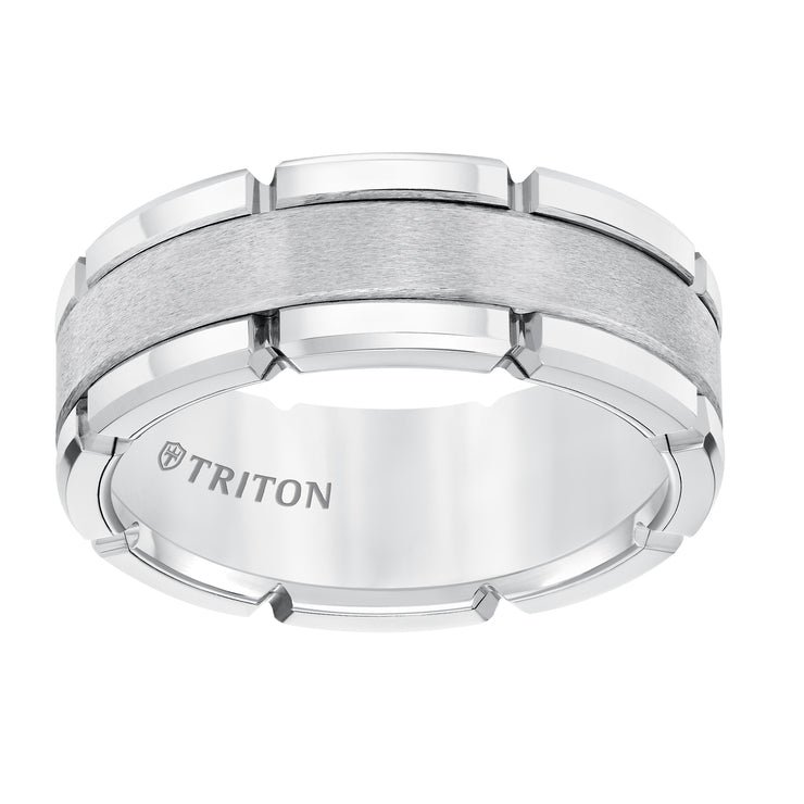 8MM Black Tungsten Carbide Flat Comfort Fit Band W/Brush Center &Rose Rims