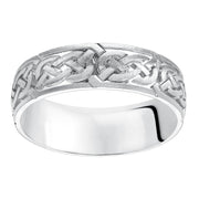 This finely crafted, Comfort Fit wedding band features an exquisite Celtic knot design, satin finish and flat edges to complete the look