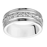 Traditional milgrain paired with a modern, bright finish, round edges and 10 stone channel set diamonds are the perfect combination for this exquisite, Comfort Fit, wedding band