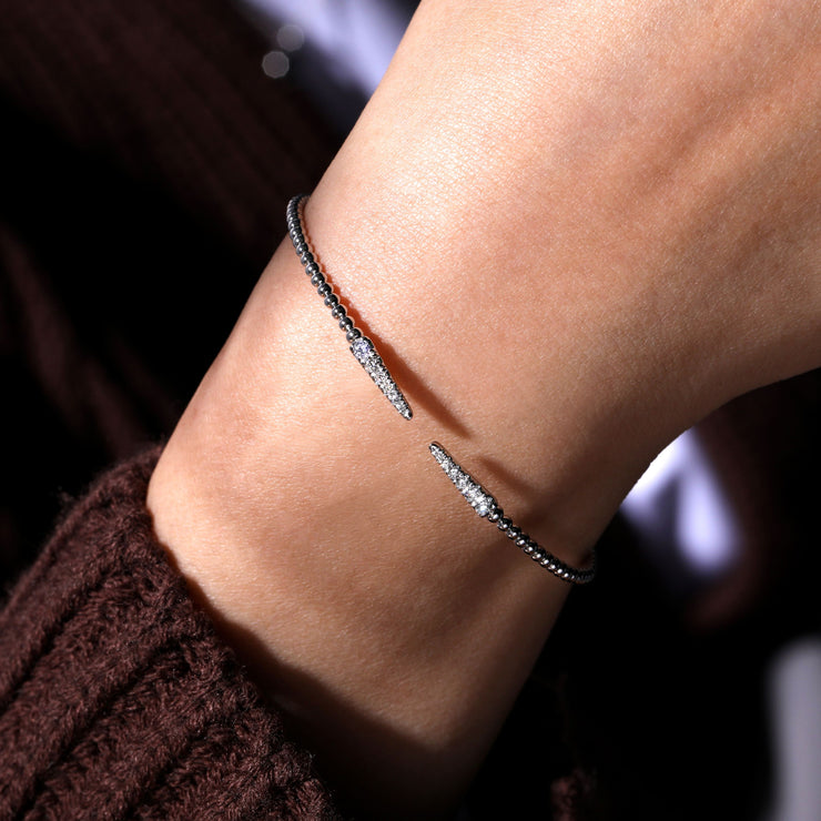 Stackable open round flexible beaded design diamond bangle