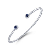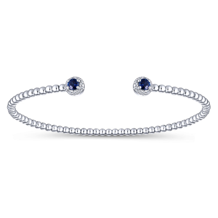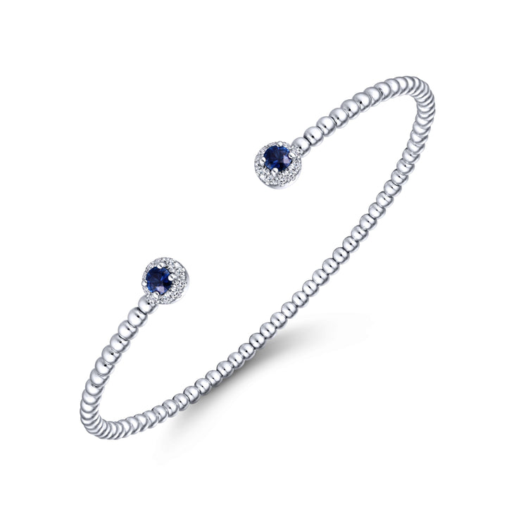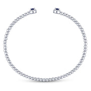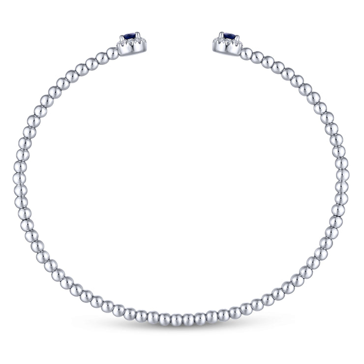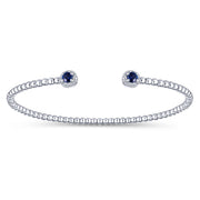 Stackable open round flexible beaded design diamond and blue sapphire bangle