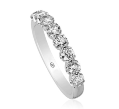 Christopher Designs band with .84cttw GSI2 round diamonds falling halfway around the finger set in 18K white gold.