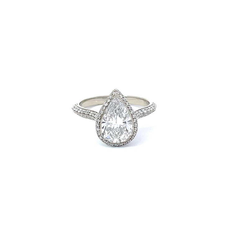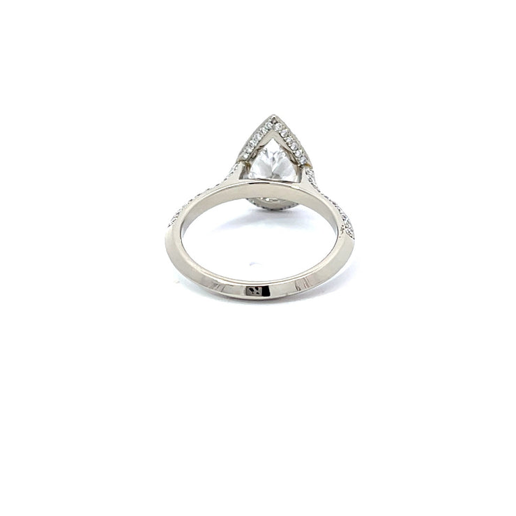 A 2.05 carat pear shaped diamond with an additional 0.64 carats of diamonds in the 18K white gold setting.