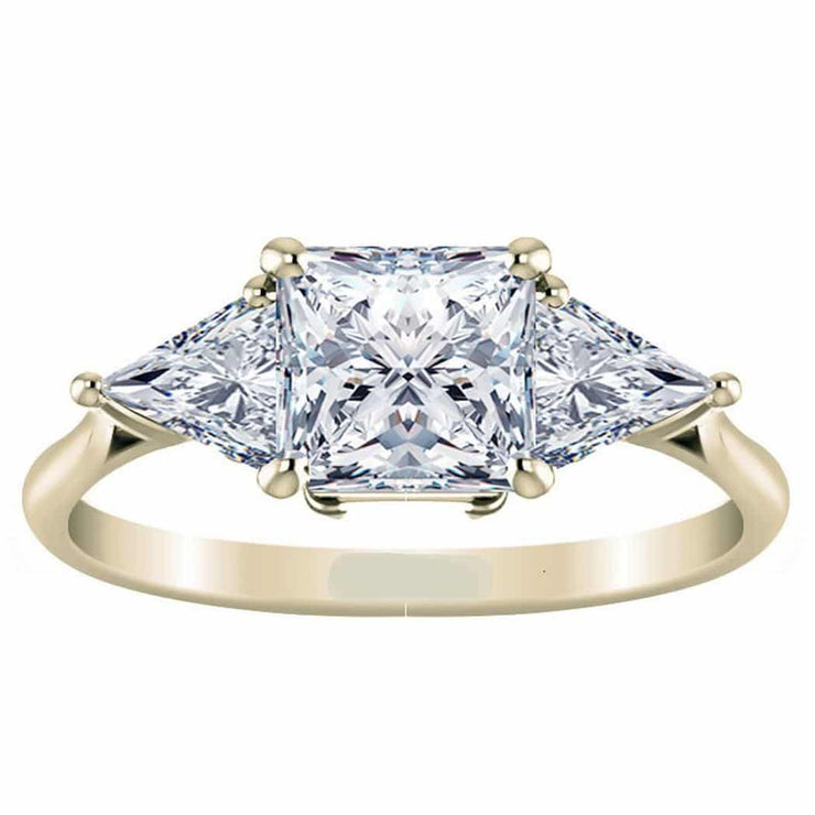 Princess and Trillion Cut Diamond Three Stone Ring