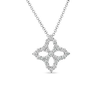 18K white gold with 0.50 carats of diamonds on an 18" chain.